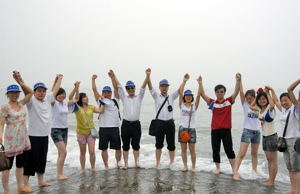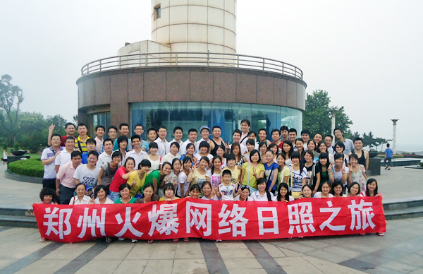火爆網(wǎng)絡全體員工在燈塔前的合影留念