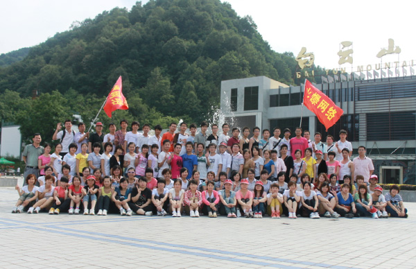 火爆網(wǎng)絡全體員工在白云山山腳下合影留念